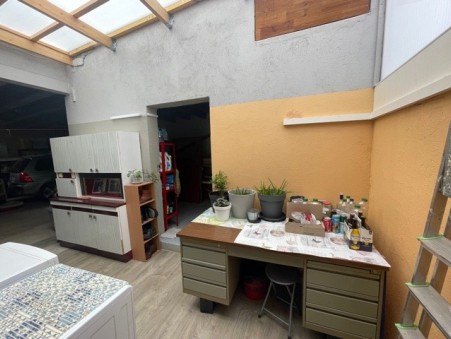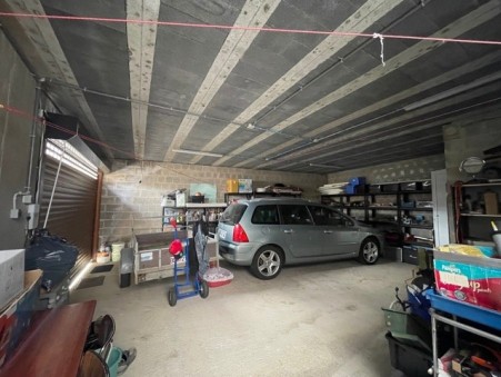 Pièce chaufferie avec buanderie ouverte, grand garage avec porte électrique, cave droite