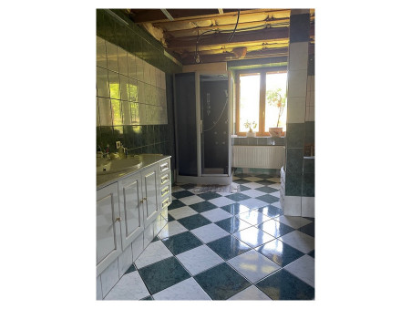 A l'étage un palier avec passibilité bureau donne accès à 4 grandes chambres, une salle de bains spacieuse avec douche et baignoire, un WC et un grenier.