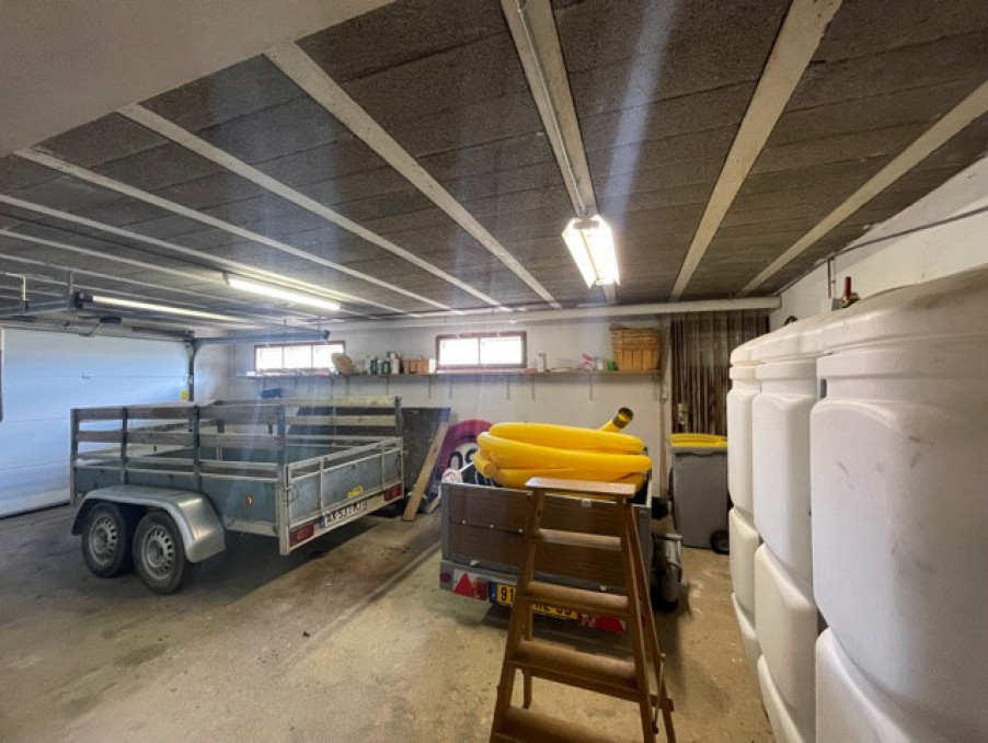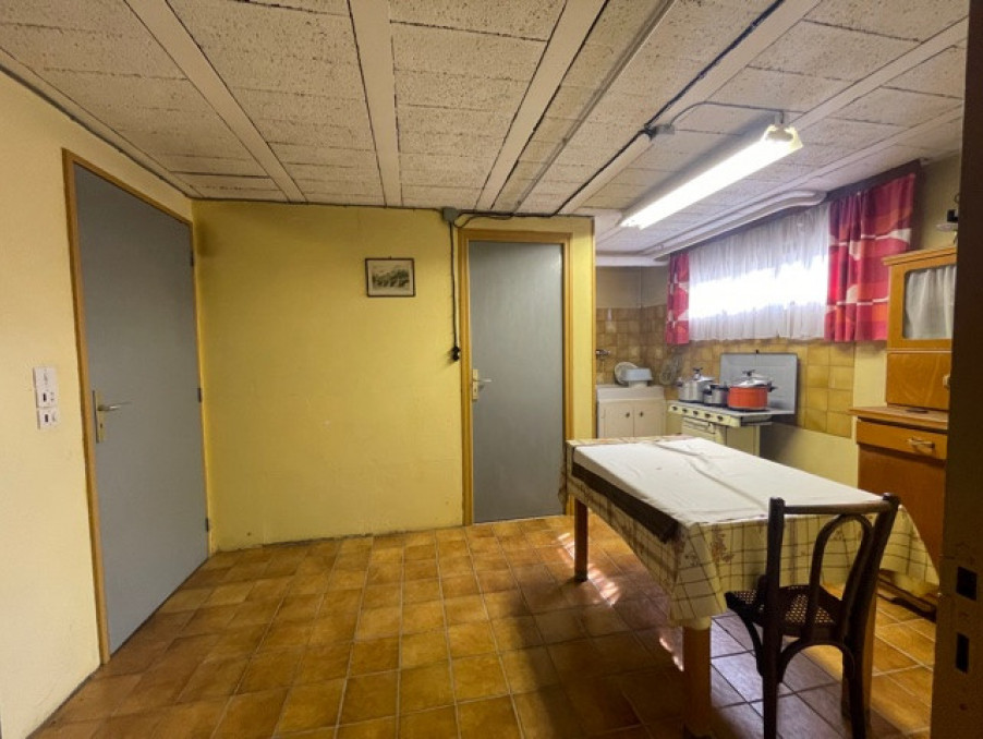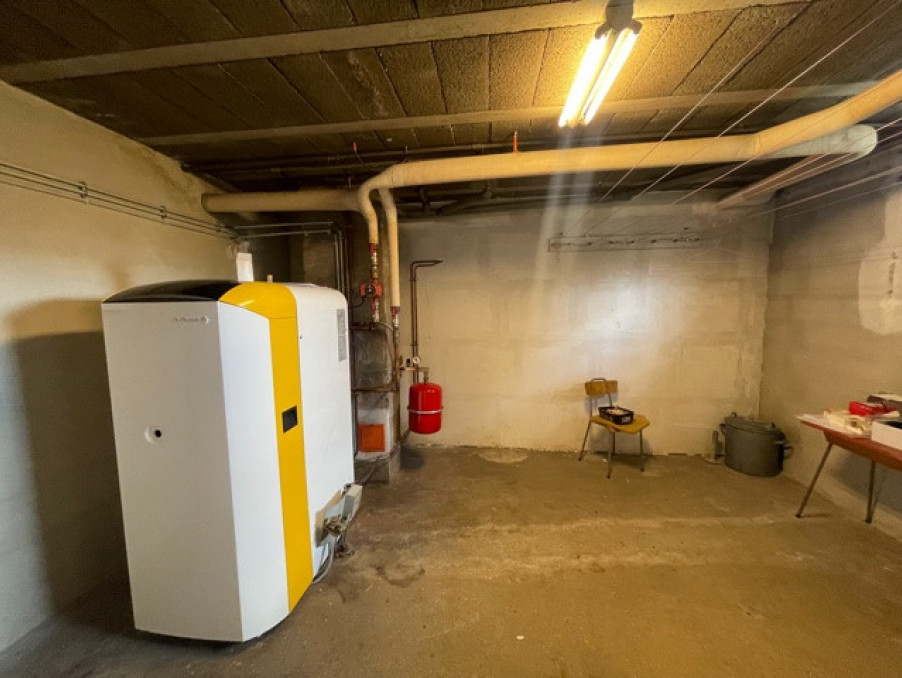 Composé au sous-sol : garage avec porte électrique, pièce chaufferie, cave, pièce cuisine d’été, salle de bains baignoire et WC
