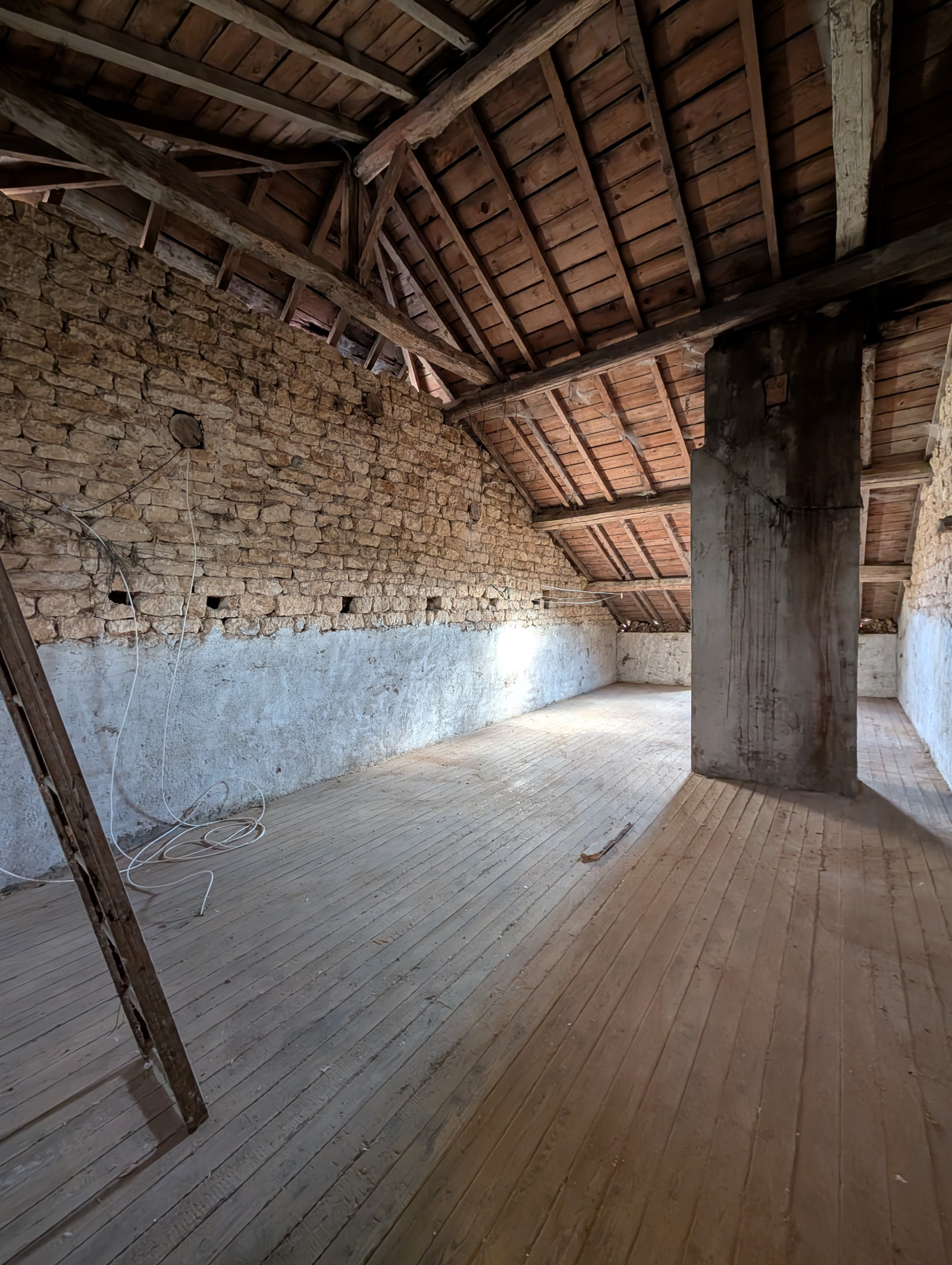 Ecurie de 135 m²., Grange de 113 m². , 1 cave et jardin sur le côté et à l'arrière.