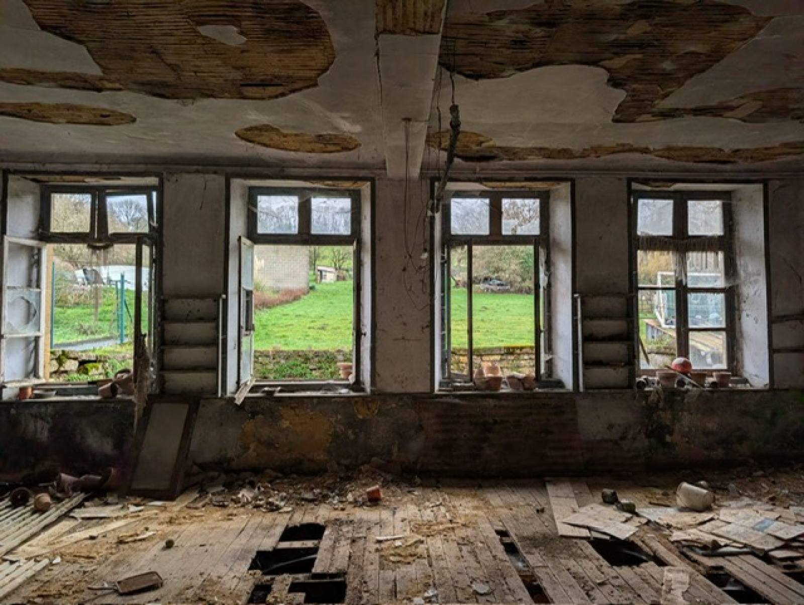 Construite sur des caves de 64 m2, et une écurie de 68 m2 avec grenier au dessus de la même surface.