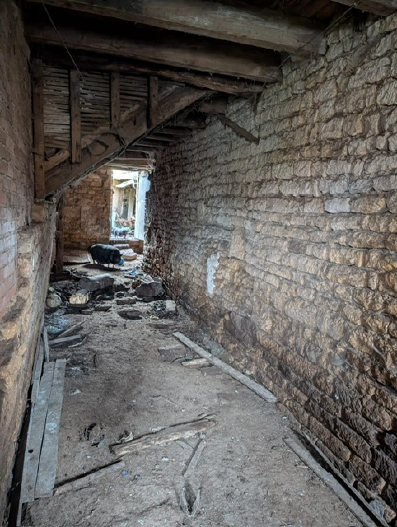 Ancien coprs de ferme en pierre transformé avec possible habitation de 160 m2, dont une pièce principale d'environ 65 m2 avec une jolie vue sur le jardin.
